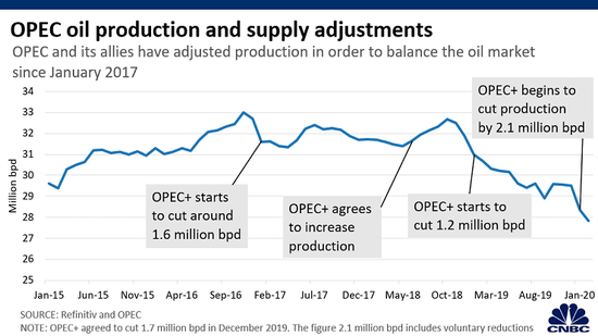 在3月份的会议上,欧佩克提议将日产量削减150万桶,以应对需求放缓,但欧佩克的盟友俄罗斯拒绝进一步减产。会议没有达成任何协议,作为报复,沙特阿拉伯为了获得市场份额而大幅下调了油价,随后又将产量提高到每天1200多万桶的历史高位。