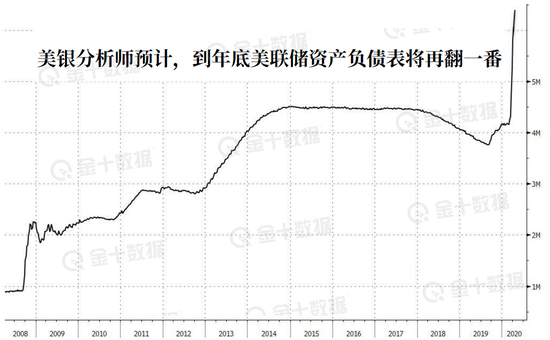而从目前的情况来看,美联储的救市行动还将持续很长一段时间,资产负债表规模必定会继续膨胀。正如美银策略师、前美联储经济学家马克•卡巴纳(Mark Cabana)所言,到今年年底,美联储的资产负债表规模将翻一番,达到9万亿美元。