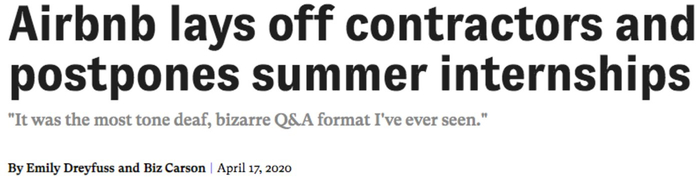 根据Business Insider的报道,在Airbnb 4月16日举行的Zoom每周问答会议上,Airbnb CEO Brian Chesky宣布将提早和公司合同工解约。