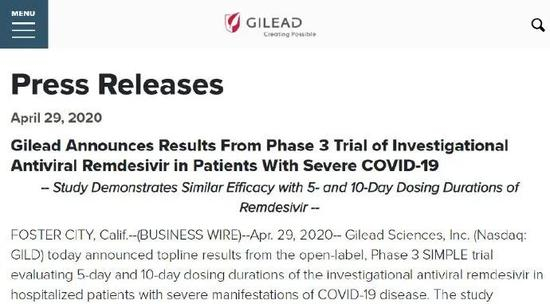 “新冠特效药”最新进展出炉 瑞德西韦神话破灭?