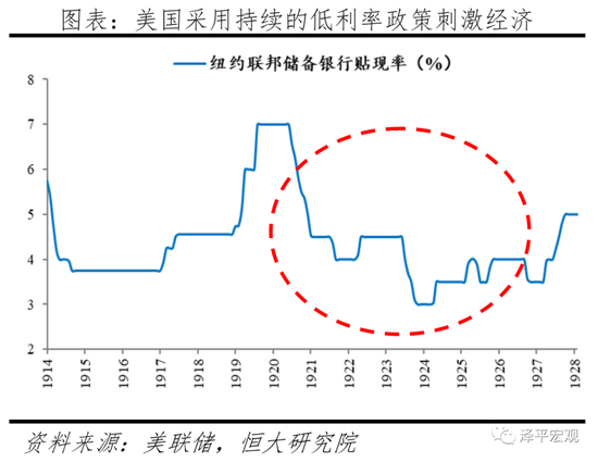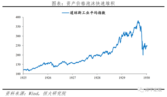 货币政策宽松,监管缺失,信贷大幅扩张,各部门杠杆率快速提升。一方面,为刺激经济增长,美联储维持宽松的货币政策,1921-1927年,贴现率由7%下调至3.5%,累计调降350BP。另一方面,自由放任主义主导下,金融监管环境宽松,商业银行混业经营,同时这一时期美国陆续通过《联邦储备法》修正案及《麦克登法案》,促进甚至鼓励银行对农业、证券业等发放贷款。货币政策的宽松和监管的缺失极大刺激了消费信贷、房地产信贷扩张,信用严重膨胀,各部门杠杆率急剧上升,美国总体债务率在20世纪30年代初达到近300%的历史高点。