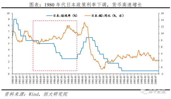 为抑制通胀和资产价格泡沫,货币政策转向紧缩。为了抑制通胀上升和资产价格泡沫,日本央行从1989年开始连续5次加息,商业银行向央行借款的利息率从1987年2月的2.5%上升到了1990年8月的6%。与此同时,货币供应增速大幅下滑。