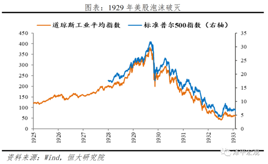货币政策收紧,监管趋严,刺破资产价格泡沫。一方面,为应对日益失控的股市投机,美联储收紧货币政策,1928-1929年间8次加息,贴现率由3.5%上调至6%。另一方面,监管逐步趋严,美联储要求银行减少对入市资金放款、提高保证金比例,加剧投资者负担。货币政策转向紧缩、监管趋严叠加经济疲软,资产价格快速下跌,泡沫破灭。1929年10月,市场恐慌情绪蔓延,所有股票被“不计代价地抛售”,道琼斯指数从月中高点下跌35%至230,危机由此爆发。