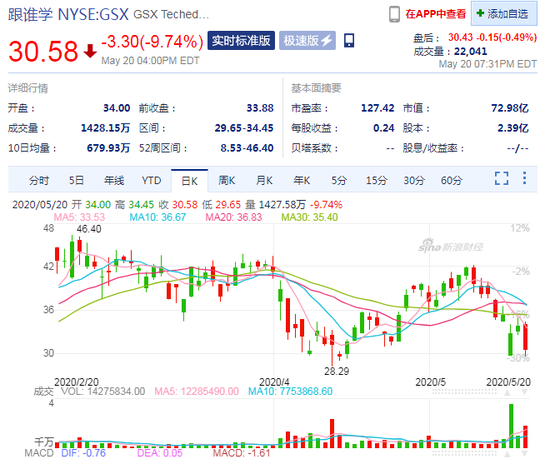 周三,跟谁学美股股价在今日大跌9.74%,报30.58美元,距4月1日的41亿美元已经下跌近25%,此前跟谁学在4个月连续遭到6次做空。