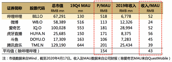 如果这个数值的真实性可以确定,那么B站每个月活的值钱程度就是其他平台的3、4倍不止。这显然在具体市场上来说是不成立的,至于这个估值有没有透支,见仁见智。