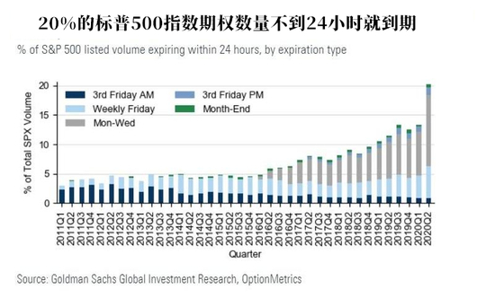 更大的问题是,根据对超短期动量交易的追踪,高盛发现即将到期的期权数量猛增——高达20%的标普500指数期权还有不到24小时就到期。