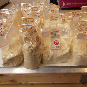 在法国禁足后期的五月份,商超也开始大面积上架“法国造”一公斤“塑料袋”装的面粉,因为是从批发领域转过来的,所以面粉的包装并不规则化,价格也是德国进口面粉的两倍。这也是为什么超市那些零售包装的便宜面粉,几乎都不是法国本地产。长期来看,法国还要应付自身繁冗的面粉管理和劳工政策,要转型到商超面粉自给并不容易。