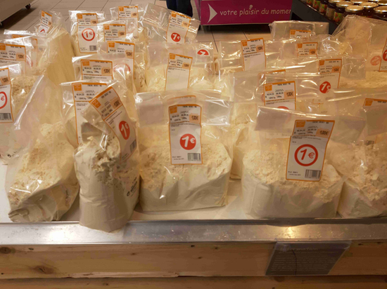 法国每年生产四百万吨面粉,但其中就成都是供应给烘培店和烘培工厂,这些批发消耗量在疫情期间缩水。按道理来说,这些面粉完全可以转向稀缺的超市零售,甚至出口。此时的法国囧就囧在三大面粉制造商即使日夜开工,不眠不休,也无法满足疫情爆发之后全国超市上的面粉供应——要么小份量规格包装袋短缺,要么交通物流放缓,结果一切都无法迅速掉头。在一个并不缺面粉的国家,却因为超市货架上的面粉短缺引发了无端的恐慌。