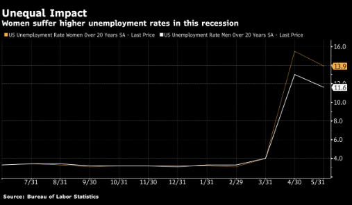研究人员写道,即使到各州开始重启经济之际的5月中,最低五分位组的就业还是比2月减少约30%。女性就业减少幅度比男性多出约4个百分点。