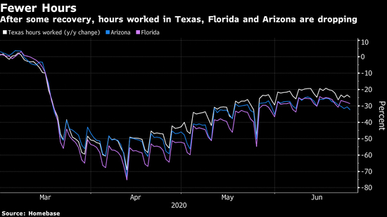 随着亚利桑那,加利福尼亚,佛罗里达,乔治亚和德克萨斯州新冠病例的增多,一些州对经济活动施加了新的限制或暂停了重新开放计划。亚特兰大联储行长Raphael Bostic、克利夫兰美联储行长Loretta Mester等美联储官员本周警告说,病毒的加速传播带来了新的风险。