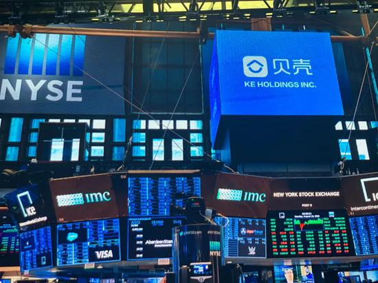 纽交所交易大厅中贝壳找房的logo十分醒目
