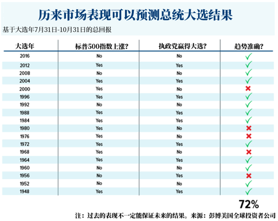 根据总统大选周期理论,当7月31日-10月31日股市出现上涨,执政党往往会胜出大选。而当市场出现暴跌,在野党则会获得胜利。