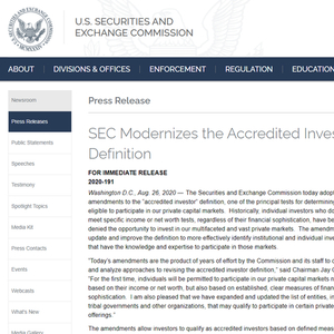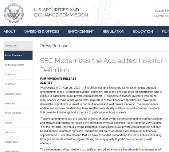 这是SEC近40年来首次降低投资私人证券的门槛,通俗一点说,可以看成是美国证交会对“有钱更重要”还是“有才更重要”二者之争的一个准则性转变。