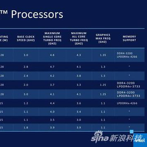 本次发布的处理器一共有9款,包括5款TDP范围在12-28W的产品和4款TDP范围在7-15W的产品,分别对应原本的低压和超低压产品线。