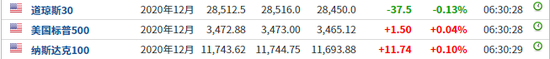 截至发稿,道指期货跌37.5点或0.13%,报28512.5点;标普500指数期货涨1.5点或0.04%,报3472.88点;纳斯达克100指数期货涨11.74点或0.1%,报11743.62点。