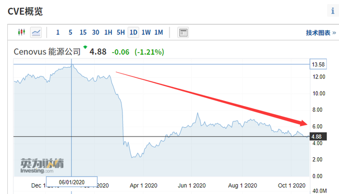 其实,油价重压之下,Cenovus的日子也不好过。今年以来Cenovus的股价跌超60%。