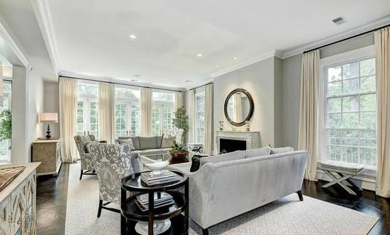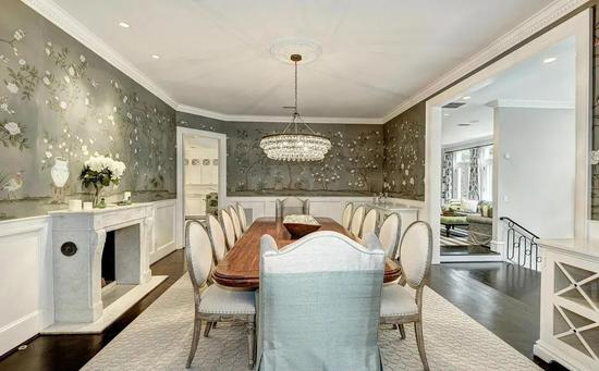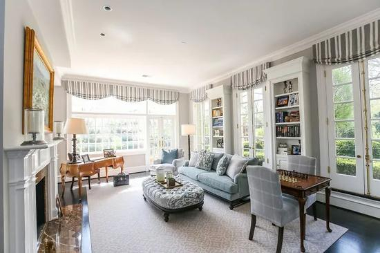这套占地近12,000平方英尺的房屋在一条风景如画的安静道路后面,设有门厅,家庭影院,可停放20辆汽车的停车场以及带桑拿浴室的设备齐全的健身房。