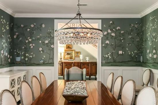 走进餐厅,仿佛是一个看似真实的18世纪的房间,装饰着水晶吊灯和复古小印花墙壁。