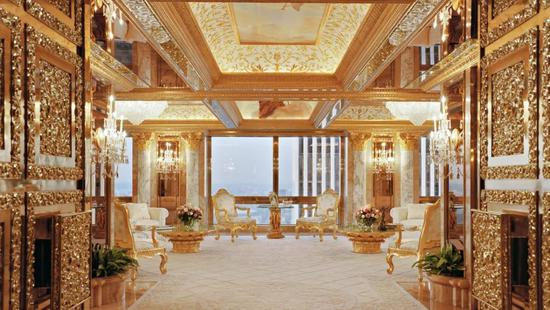 纽约Trump大厦就是特朗普名下资产,从66层开始就是其三层复式豪宅,其室内豪华程度,简直不是常人能够参透!