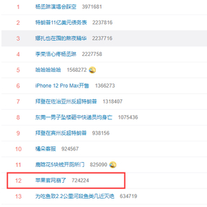 11月6日晚9点,苹果 iPhone 12 mini 和 iPhone 12 Pro Max 正式开启预订,然而苹果中国官网却被刷崩了,这一话题还冲上了微博热搜……