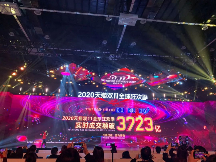交易额方面,11月1日至11日0点30分,2020年天猫双11全球狂欢季实时成交额突破3723亿!天猫方面预计,今年天猫双11吸引超过8亿消费者、25万品牌、500万商家共同参与,是覆盖面最广、参与度最高的一届。