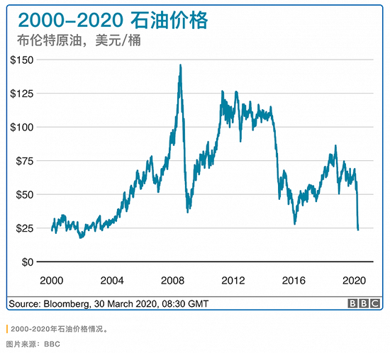 但在2014年,国际油价暴跌,布伦特原油价格从100美元/桶,跌到57.33美元/桶。