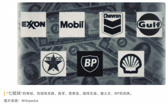 在20世纪初,盘踞在石油领域的除了上述洛克菲勒的三家公司,还有包括壳牌(Royal Dutch Shell Plc)的四家其他公司,这七家公司被称为“七姐妹”(The Seven Sisters)。