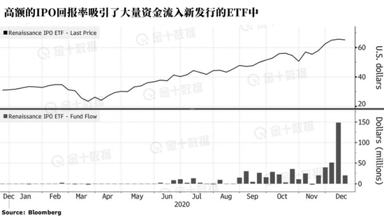 据估计,今年美国IPO的平均首日回报率达到40%,是除1999年和2000年以外的最高水平。这引起了投资者们对追踪新上市公司的Renaissance IPO ETF的兴趣 ,该基金今年以来的涨幅超过了100%。