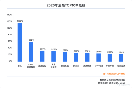 2)涨幅:新能源汽车与电商一马当先,富途涨幅居TOP3