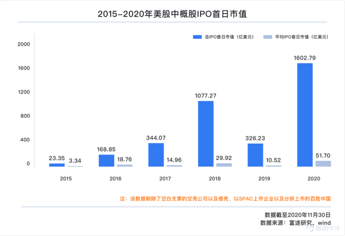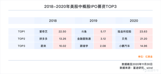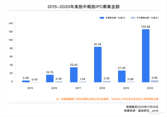 2020年是中概股赴美上市融资额创记录的一年,截至2020年11月30日,31家中概股狂揽超120.68亿美元,约2019全年4.4倍,走出2019年的阴霾。