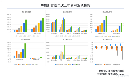 那批回归潮中的头部公司有360、分众传媒以及盛大网络,通过资产重组,世纪华通取得现在盛大游戏资产,这些企业在营收净利方面也处于第一梯队;第二梯队的游戏公司完美世界以及从事智能交通的千方科技;第三梯队则是史玉柱的巨人网络,还有澜起科技和中安消。