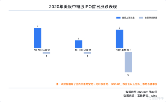 在美股宽松的流动性以及日益高涨的市场情绪下,今年IPO的中概股在定价上都颇为激进,因而上市首日表现分化明显,强者愈强。今年IPO的31家中概股中,有20家首日上涨。