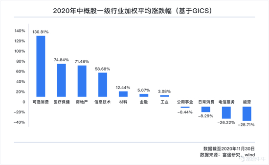 行业维度来看,按照GICS(全球行业划分标准)划分,中概股主要分布在可选消费、信息技术和金融这三大行业,占全部中概股数量的68%。