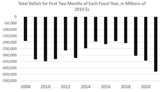 虽然美国2021财年才开始不到3个月,但大规模的经济刺激预示这一年很可能又是一个财政支出和政府赤字失控的年份。