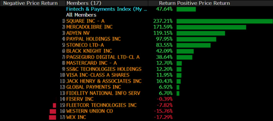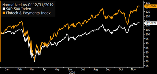 彭博发布美国金融科技与支付行业2021年展望,称这几支股将会极大受益。