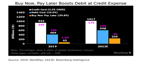 先买后付模式将助力借记卡消费,拖累信用卡消费