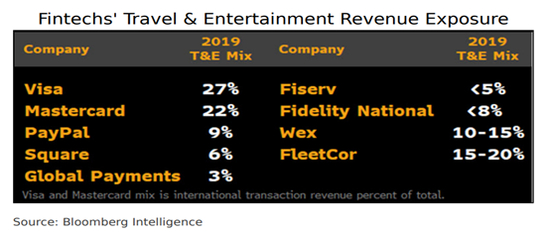 那些更依赖于店家的费哲金融(FISV.O)和环汇(GPN.N),尤其是依赖于旅游支出的FleetCor科技(FLT.N)和WEX(WEX.N)相关股票表现则不如人意。由于代理商关闭和全球消费者收入下降,西联汇款(WU.N)的股价下跌了16%。