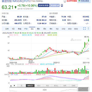 1月8日美股盘初,富途控股最高涨15.16%,报66.14美元,创历史新高。此前富途旗下的富途证券国际(香港)有限公司(以下简称富途证券)拿下香港证监会(SFC)第3类(杠杆式外汇交易)牌照,同时获准开放第7类牌照(提供自动化交易)暗盘接入第三方中介机构。