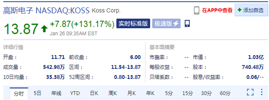 耳机制造商高斯飙升逾130% 分析师称其或成美国散户下一个宠儿