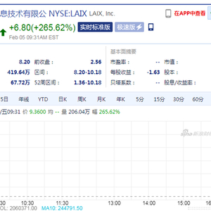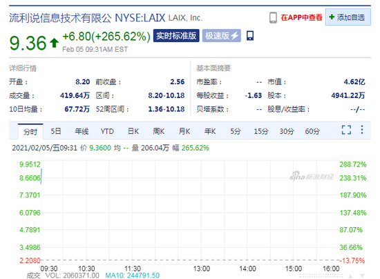 流利说盘初大涨265%,报9.36美元。该股周四收盘大涨33%,交易额达到惊人的1622.54万美元,与前几日寥寥无几的流动性形成鲜明对比,并且股价创下自2020年3月以来最高记录。