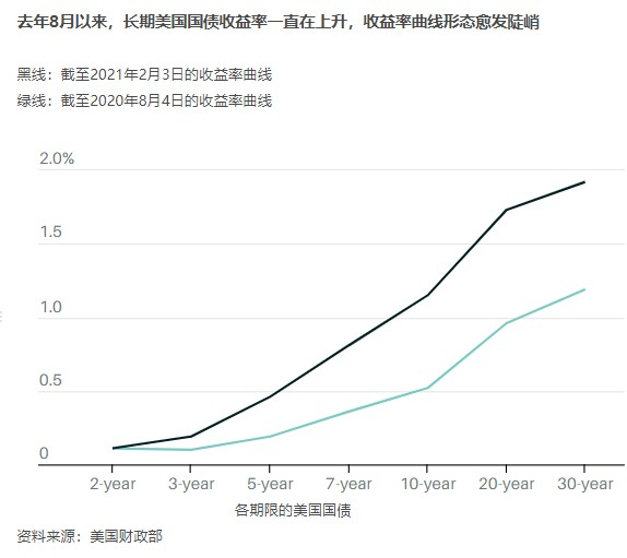 最近长期美国国债收益率的上升速度远超短期国债收益率,说明投资者预计美国经济复苏步伐将加快。