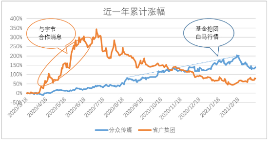 传统梯媒巨头分众传媒在近一年中股价涨幅最大,因新冠疫情过后广告市场逐渐走出低谷,加之公司积极向数字化转型,牵手互联网巨头开展在线营销服务,在2020年下半年A股市场“核心资产”爆发之中受益明显,紫天科技也是相似表现。
