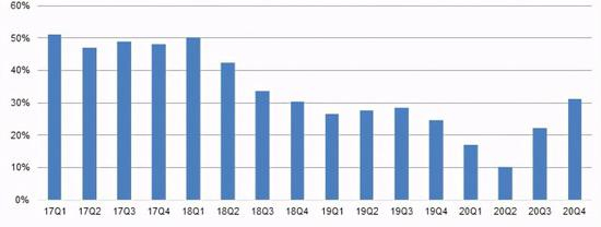 受益持续强劲的电商广告需求,Facebook 也交上一份完美答卷。2020年Q4总收入同比增33%达281亿美元,超过彭博一致预期的263亿美元;GAAP EPS为3.88美元,远超华尔街预期的3.21美元。
