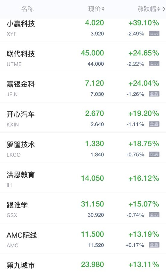 领涨中概股列表: