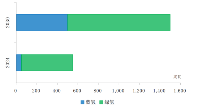 图表:BP在2024年和2030年所规划的氢气产量
