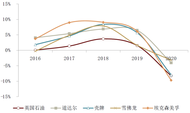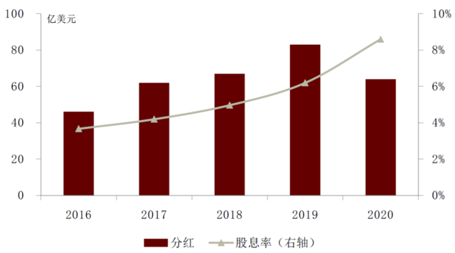 英国石油公司(BP)2020年出现近五年来的首次全年亏损。BP 2019年的净利润为40亿美元,2020年净亏损为203亿美元,这是BP近五年来首次全年亏损。BP 2020年的总派息金额同比下降了23%,但股息率维持了之前的上涨趋势,达到了8.6%。BP年报显示,在新冠疫情和油价下跌的双重打击下,下游需求市场承受了较大的压力。与此同时,油气市场的低迷也使得BP计提了大规模资产减持。