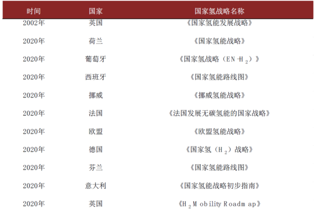 图表:欧洲氢能政策汇总