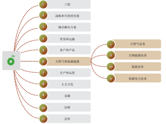 天然气业务;生物能源业务(BP持有BP Bunge公司50%股份);氢能业务;低碳电力业务(BP持有Lightsource BP公司50%股份)。