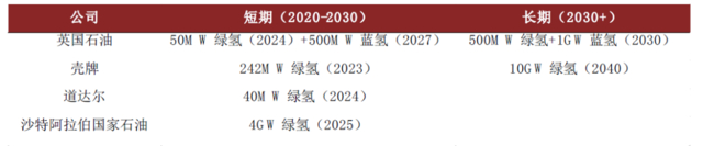 图表:主要国际能源公司已规划氢气产量