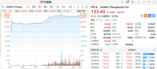 基因编辑公司Intellia Therapeutics(NTLA) 无疑是周一美股市场最值得关注的个股,因为公司宣布取得了一项突破性医学成果。该股盘前一度涨近60%,开盘后更是一路走高,最终收涨逾50%,最新市值达90.94亿美元。不再错过下一个暴涨医药股,点此3分钟解锁美股投资技能>>